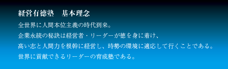 人間力を高めたリーダーを育成し、受講者の事業の発展・拡大を支援する塾である。
