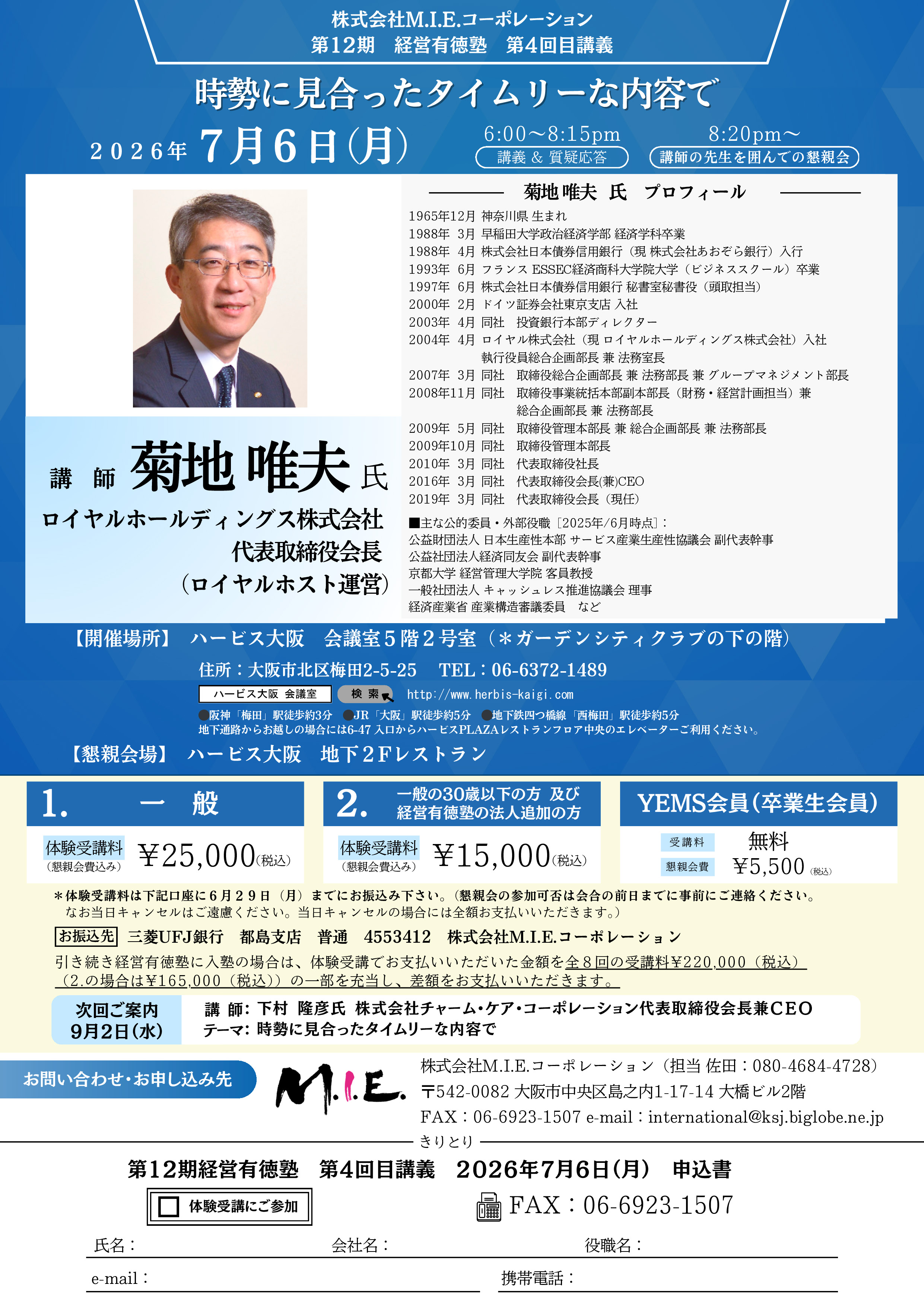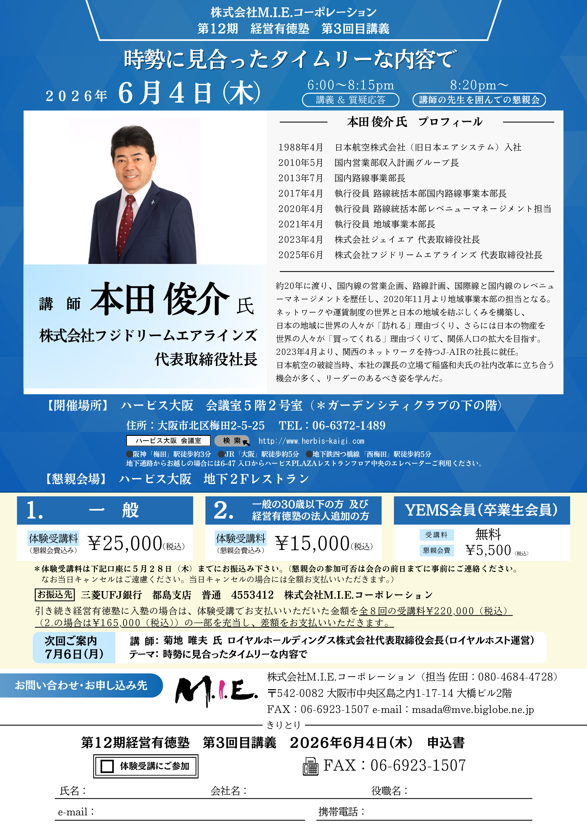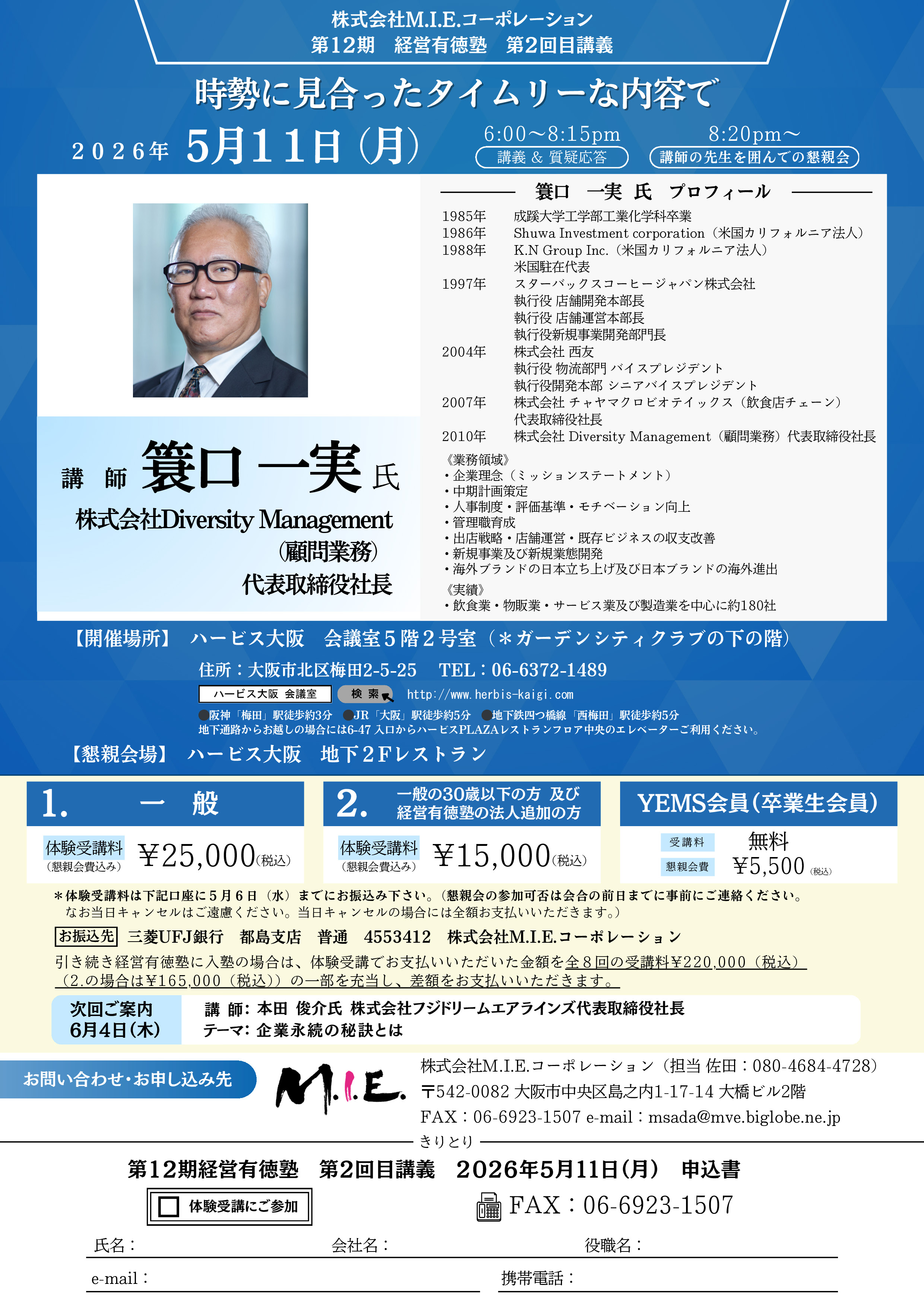 | MIE会員、YEMS会員、経営有徳塾生 |